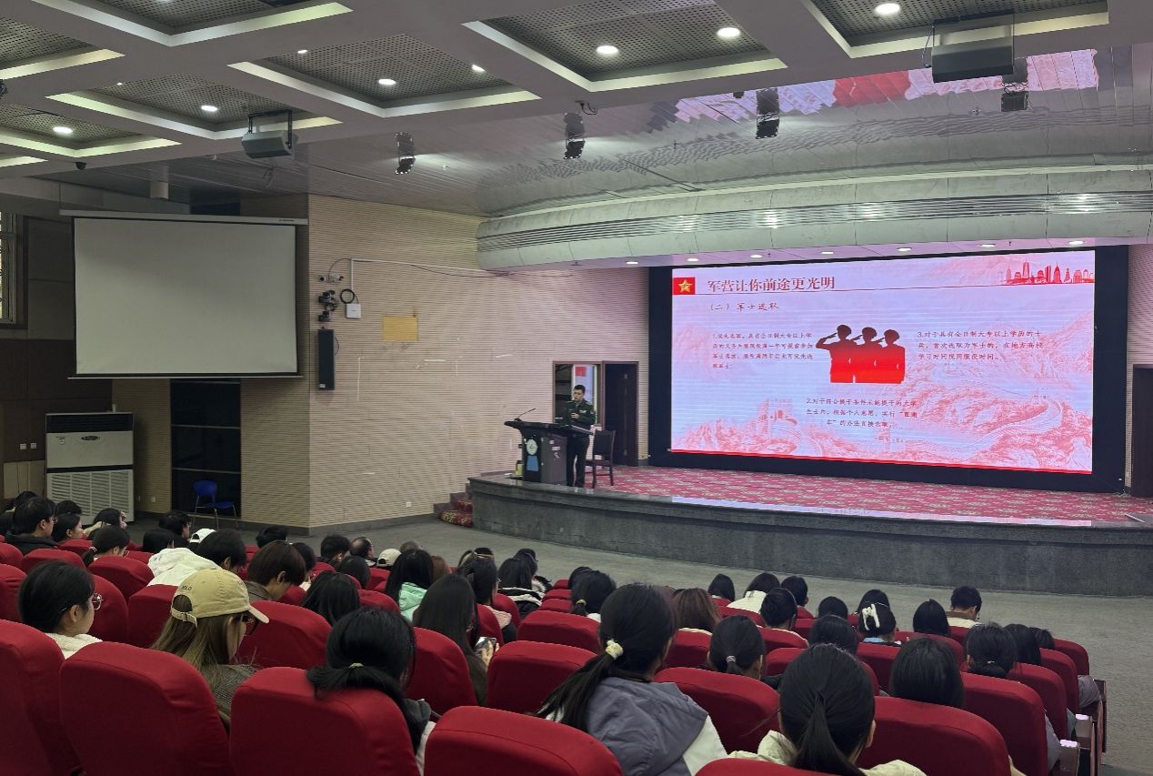为激发青年学子参军报国热情,12月16日,都江堰校区综管办邀请都江堰市人武部上校部长周晓枫一行,在校区图书馆报告厅举行2026年度国防教育暨征兵政策宣讲会。校区综管办党委书记陈文华主持活动,相关部门及学院师生代表近400人参加。