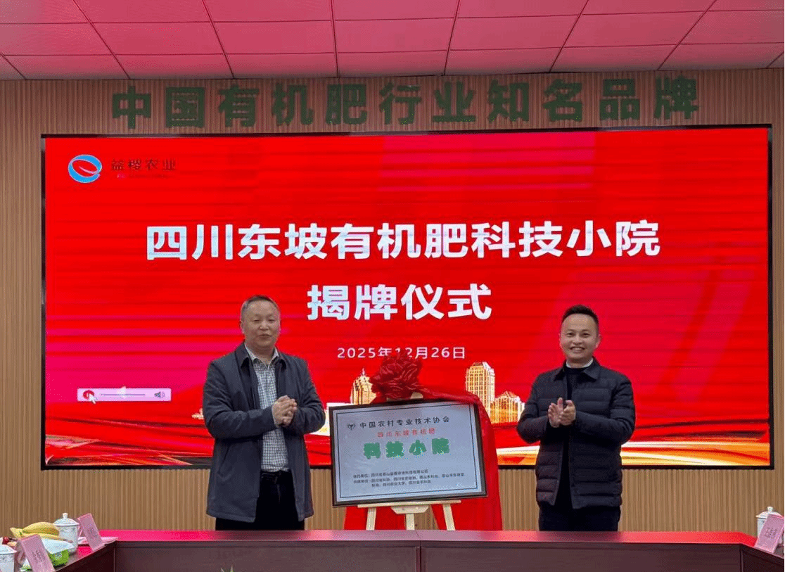 12月26日,资源学院联合四川眉山益稷农业科技有限公司申报获批的国家级科技小院“四川东坡有机肥科技小院”在眉山益稷农业科技有限公司正式揭牌。学院院长邓仕槐教授,陈强教授、余秀梅教授、贺茂强副教授与眉山市及东坡区科协、学院专家团队、企业代表和首批入驻研究生共同见证这一重要时刻。