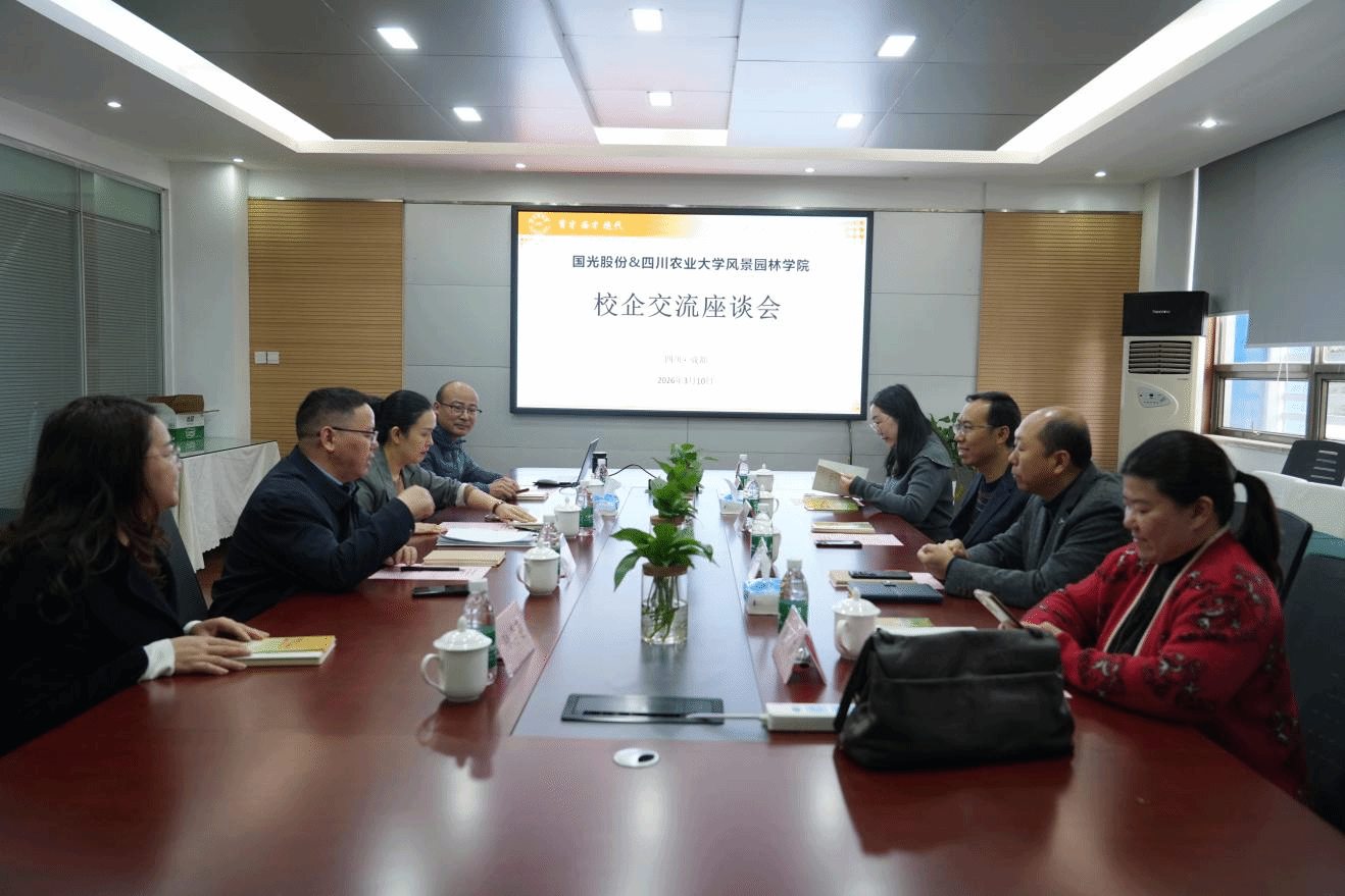 另悉,为积极拓展毕业生就业渠道,深化校企合作,精准对接行业人才需求,3月10日上午,风景园林学院党委书记饶远林带领学院专业教师及就业工作相关人员,前往四川国光农化股份有限公司进行访问交流。国光农化总经理蒋飞对饶远林一行的到来表示欢迎,并陪同参观了企业展厅,详细介绍了公司自成立以来的发展历程、核心业务领域以及在园林植保、植物生长调节剂研发与应用方面取得的成就与行业地位。