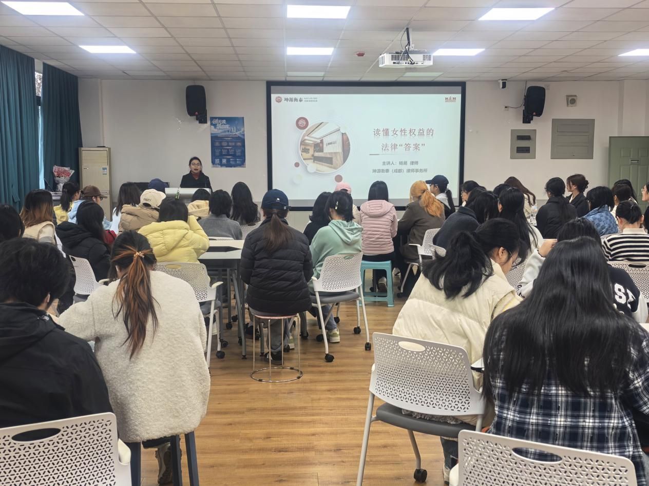 为迎接第116个“三八”国际妇女节,切实提升女大学生职场权益保护意识与心理调适能力,3月8日上午,由管理学院学生会主办、文娱部与权益部承办的“律法护航,心光绽放——女性职场劳动权益讲座”举行。活动特邀百强律所之一的重庆坤源衡泰(成都)律师事务所杨易律师担任主讲嘉宾。