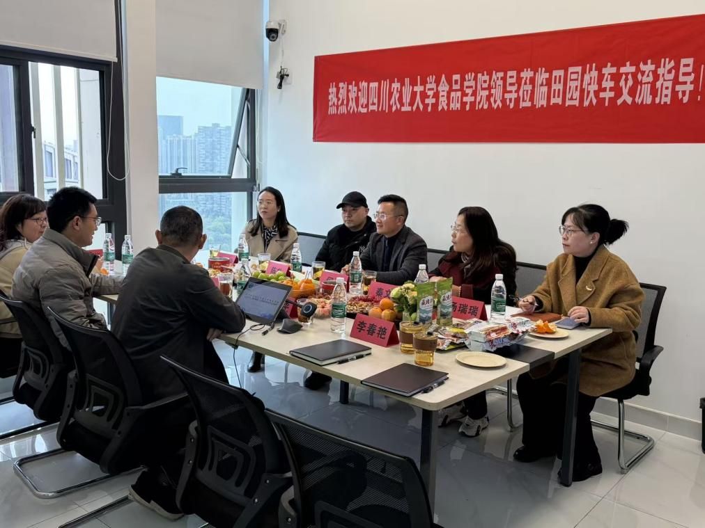 为整合食品行业校友企业优质资源,凝聚校友力量共贺四川农业大学120周年华诞,3月18日下午,食品学院党委书记何勇、党委副书记汤瑞瑞、农产品采后处理及未来食品科技团队负责人秦文教授、成都艾家食品有限公司销售副总贾小玲等一行5人,赴校友企业田园快车(成都)科技有限公司开展座谈交流,并挂牌共建食品学院教学与就业实习基地。