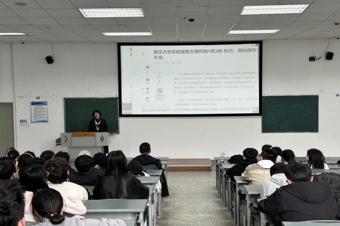 培训会上,黄婷结合安全管理经验与学科科研安全重点,通过政策解读、案例分析等多元方式,为研究生带来实用的安全教育课。她详细解读各级安全规章制度,明确研究生安全主体责任与行为底线;重点讲解实验室操作、危险化学品管理、用电及消防安全等实操内容,覆盖科研全流程安全要点;结合高校典型安全事故案例,剖析根源与教训,提醒高频安全隐患,让参训研究生深刻领悟“安全无小事,责任大于天”的内涵。