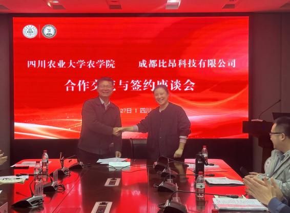近日,成都比昂科技有限公司与农学院合作交流暨签约仪式在成都校区第二教学楼201会议室举行。成都比昂科技有限公司董事长周伦率8人团队到访,学院党委书记唐城、副院长杨峰及各系室负责人参加会议,会议由杨峰主持。
