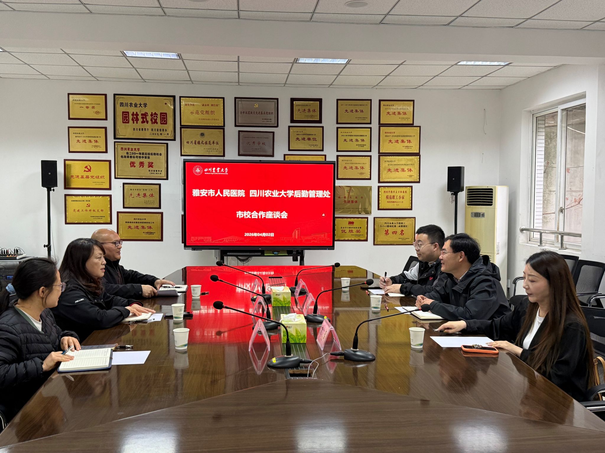 会上,后勤管理处处长陈东对雅安市人民医院一行表示热烈欢迎,并全面介绍了校医院基本运行情况。双方围绕深化医校协作进行探讨,重点就开通教职工“绿色就医通道”、联合开展健康科普活动、加强两家单位红十字会合作、推动市医院医生来校坐诊等事项进行深入洽谈。