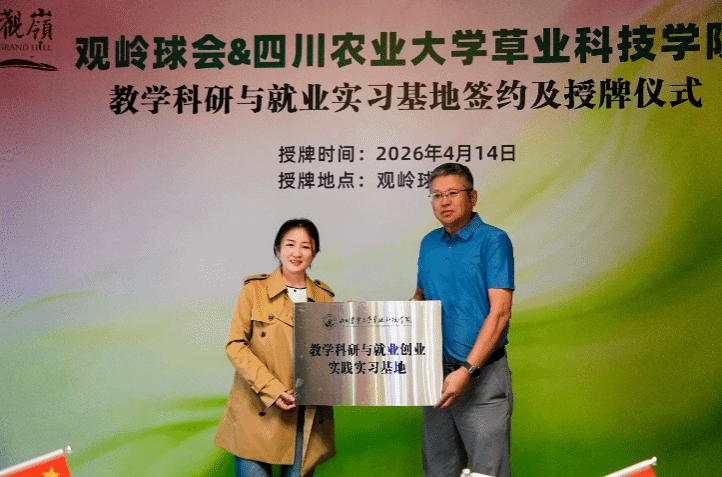 为深入落实产教融合战略,精准对接运动场草坪行业专业人才需求,进一步拓宽高校毕业生就业渠道,4月14日,学院党委书记薛波带队赴观岭高尔夫球会,围绕访企拓岗、人才培养、产学研协同创新等开展合作洽谈并举行教学科研与就业创业实践实习基地签约授牌仪式。观岭高尔夫球会董事长龚德云、总经理胡晓王茜、常务副总经理张咏、副总经理林斌、草坪部总监卢彪等热情接待并参加座谈。