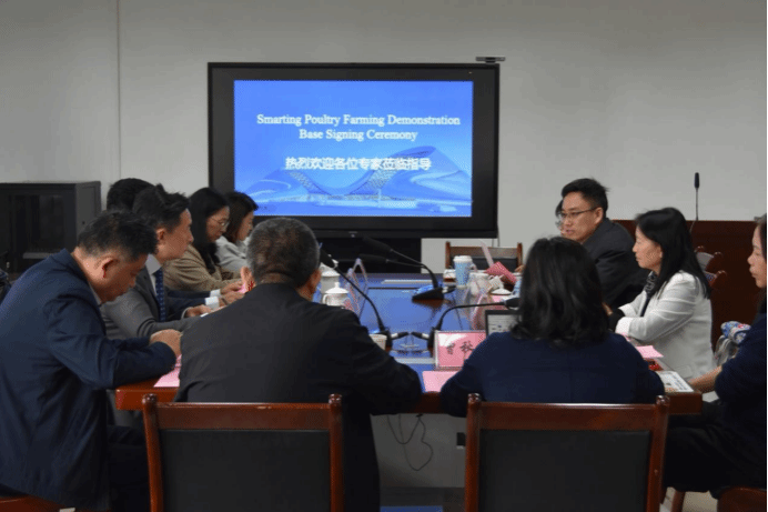 在自由交流环节,与会人员积极互动,围绕家禽营养与智慧健康养殖进行深入交流。随后,动物营养研究所与美国Poulta公司在成都校区举行了“家禽智慧养殖示范基地”授牌及签约仪式。
