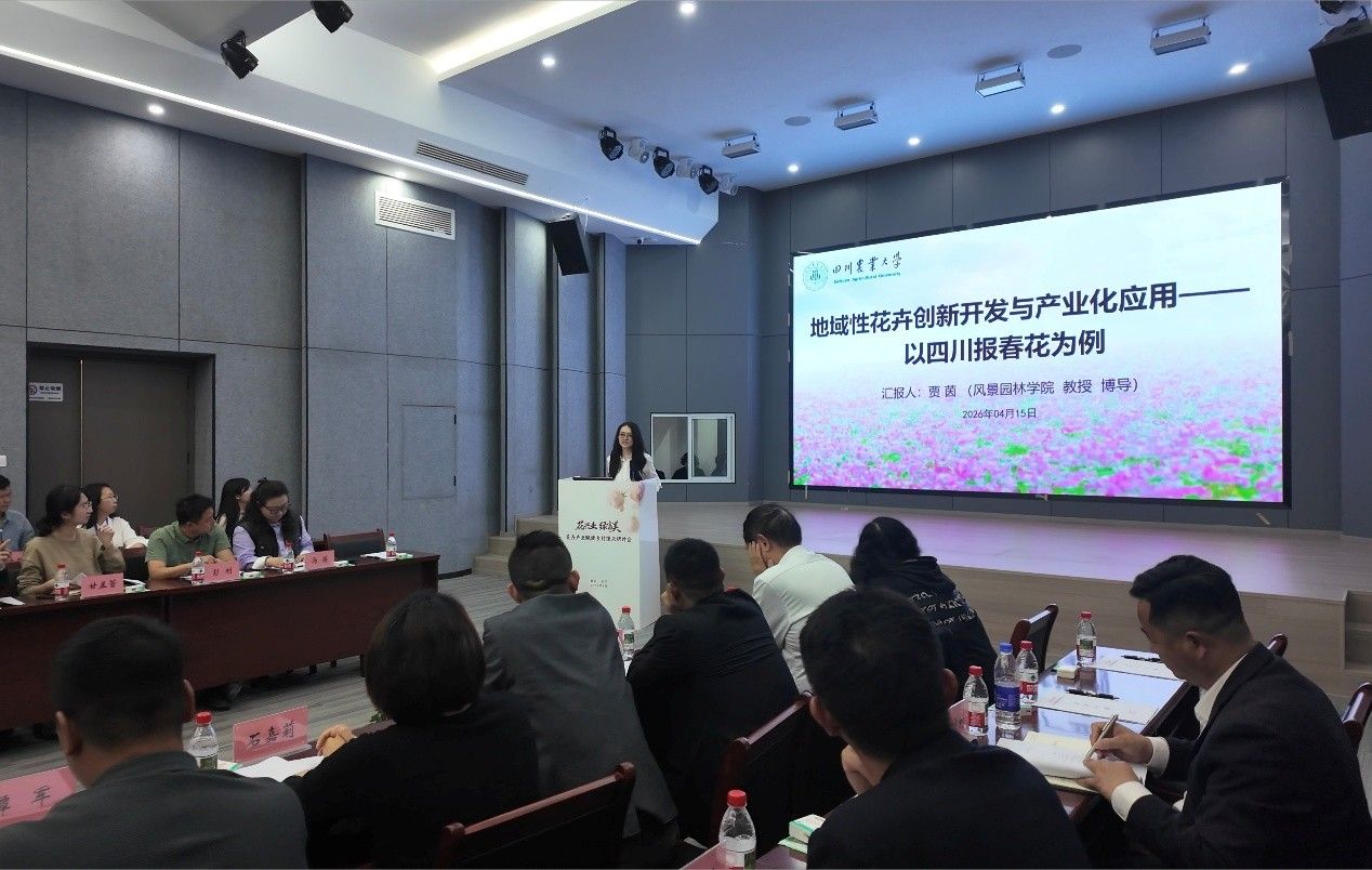 4月15日,由重庆市花卉协会主办的“2026重庆市第一届山地玫瑰嘉年华”在永川区三教镇举行。风景园林学院贾茵教授受邀出席当天举办的“花卉产业赋能乡村振兴研讨会”,并作题为《地域性花卉创新开发与产业化应用——以四川报春花为例》的报告,分享了我校在乡土花卉资源开发与产业应用方面的研究成果,获得与会领导、专家及行业代表的高度认可与评价。
