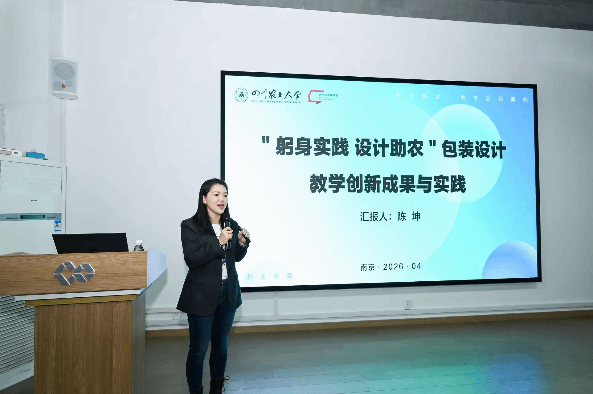 为主动回应“新文科”建设背景下设计学科与产业深度融合的时代命题,探索面向未来的设计教育创新路径,近日,由南京林业大学艺术设计学院主办的“产业嵌入与课程重构”——面向产业融合的设计教育对话主题论坛举行。来自中国农林高校设计艺术联盟的西北农林科技大学、北京林业大学、福建农林大学、仲恺农业工程学院等相关院校的专家学者齐聚一堂,共话设计教育转型方向,共商产教融合育人机制。我校艺术与传媒学院陈坤副教授应邀出席论坛,并代表《包装设计》课程组作主题汇报。