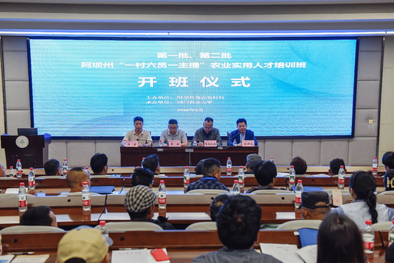 4月24日,阿坝州第一批、第二批“一村六员一主播”农业实用人才培训班在我校开班。阿坝州农业农村局副县级干部周云,阿坝州人社局党组成员、副局长宋拉扎西,我校继续教育学院党总支书记杨世义出席开班仪式,开班仪式由继续教育学院培训办冉君主持,来自阿坝州各县(市)的90名参训学员参加开班仪式。