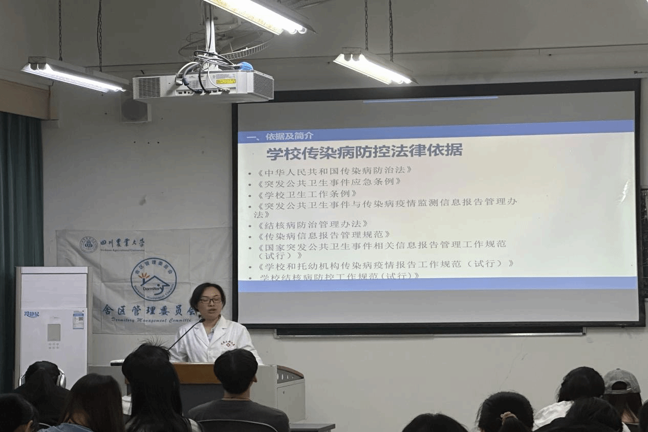 活动前期,后勤管理处邀请专业医师围绕流感防控核心要点对同学们开展专题培训。培训聚焦消毒设备规范操作、消毒液精准配比、个人科学防护等关键内容,重点讲解高频接触部位的消毒方法与操作技巧,帮助同学们系统掌握科学防控知识。培训现场互动积极,学习氛围浓厚。