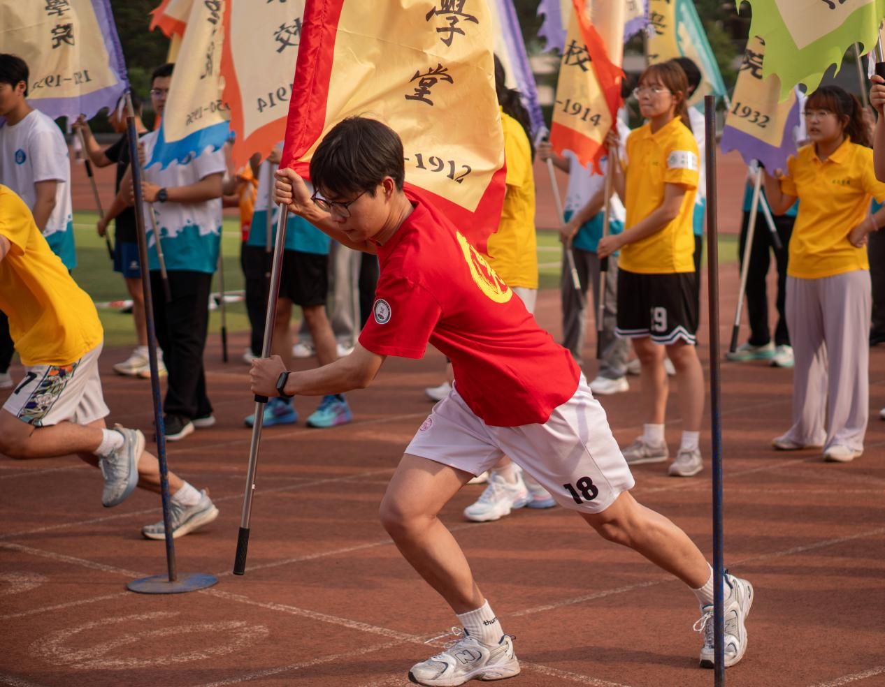 迎校旗120米接力赛,组委会专门制作了学校不同时期的校旗。师生们握的是旗帜,接的是百廿川农的历史传承!