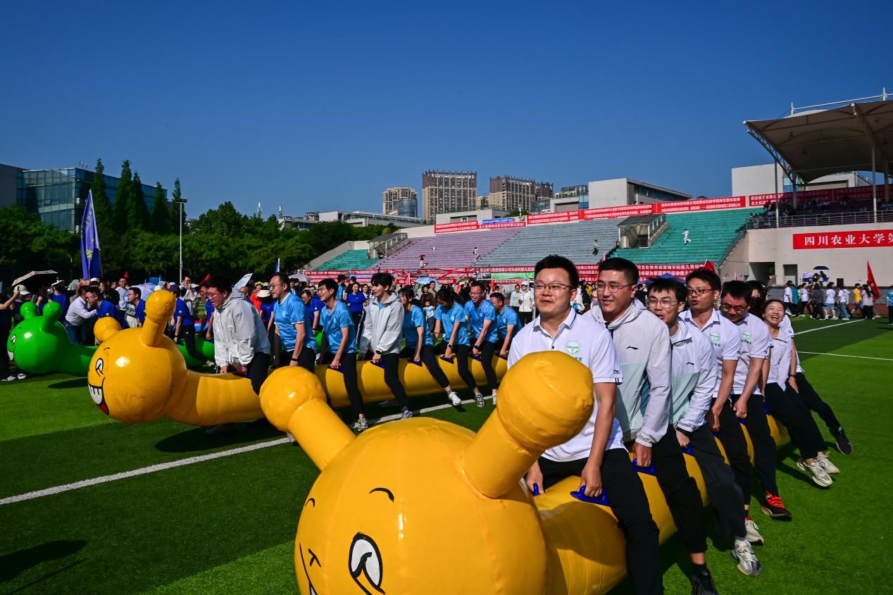 教职工们投入的热情丝毫不逊同学们。全力以赴、默契协作,在毛毛虫竞速赛、体能大比拼等集体项目中,川农人以昂扬姿态诠释热爱与担当。