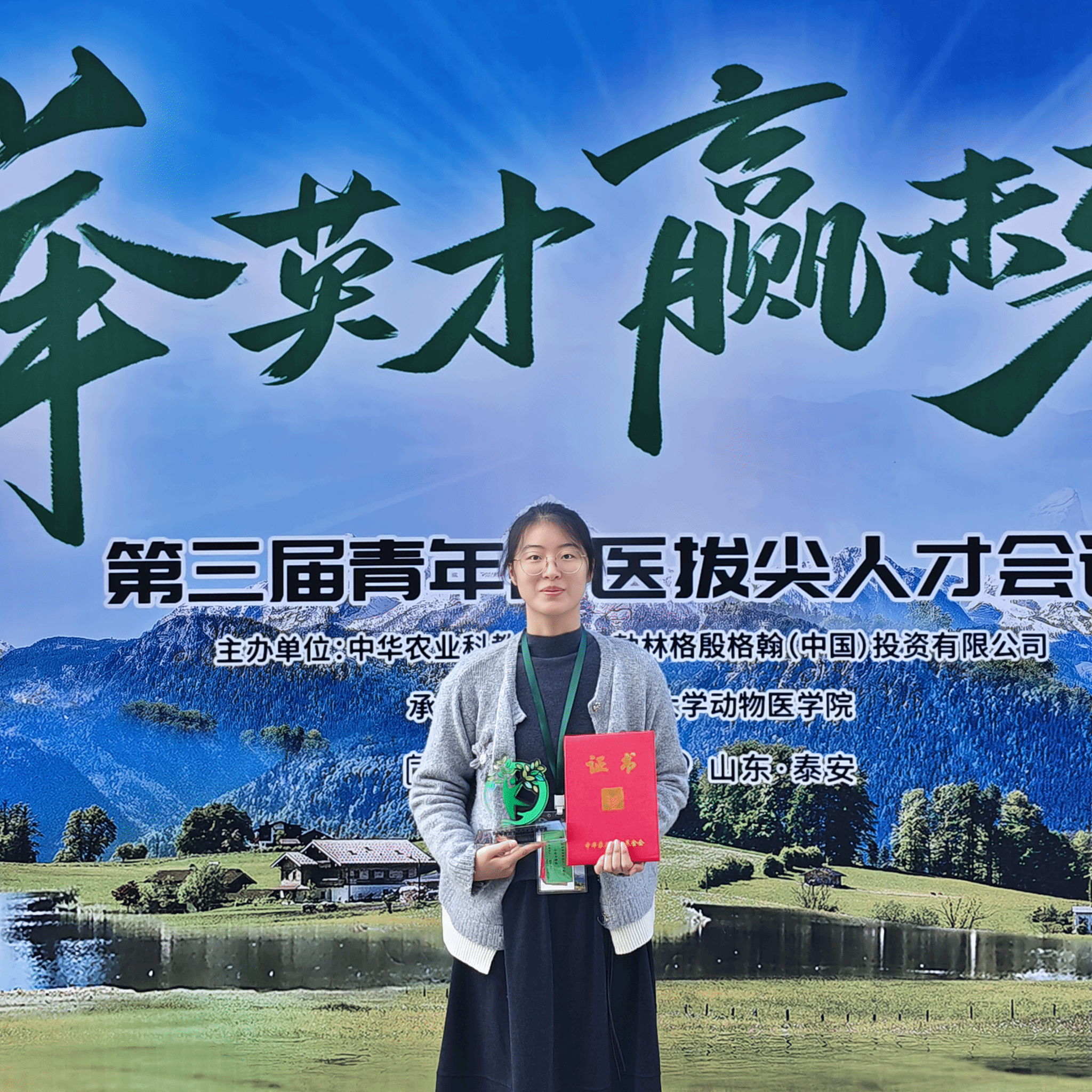 人物简介:陈佳雨,中共党员,四川农业大学动物医学院动物医学专业2021级本科生,必修加权成绩92.40,专业排名第四(4/182)。以第一作者在《Microbial Pathogenesis》发表科研论文1篇,主持校级科研项目1项,参与多项课题研究。在专业技能竞赛方面表现突出,荣获全国青年兽医拔尖人才卓越奖(全国本科生仅5人)、"雄鹰杯"小动物医师技能大赛团体特等奖及兽医新星奖(全国仅12人)、全国动物医学专业技能大赛团体一等奖等多项国家级奖项。先后担任动医本科生第二党支部纪检委员、学院权益维护部副部长、小班班长等职。获国家奖学金、国家励志奖学金、优秀学生、优秀学生干部等30余项荣誉表彰。已保研到浙江大学。