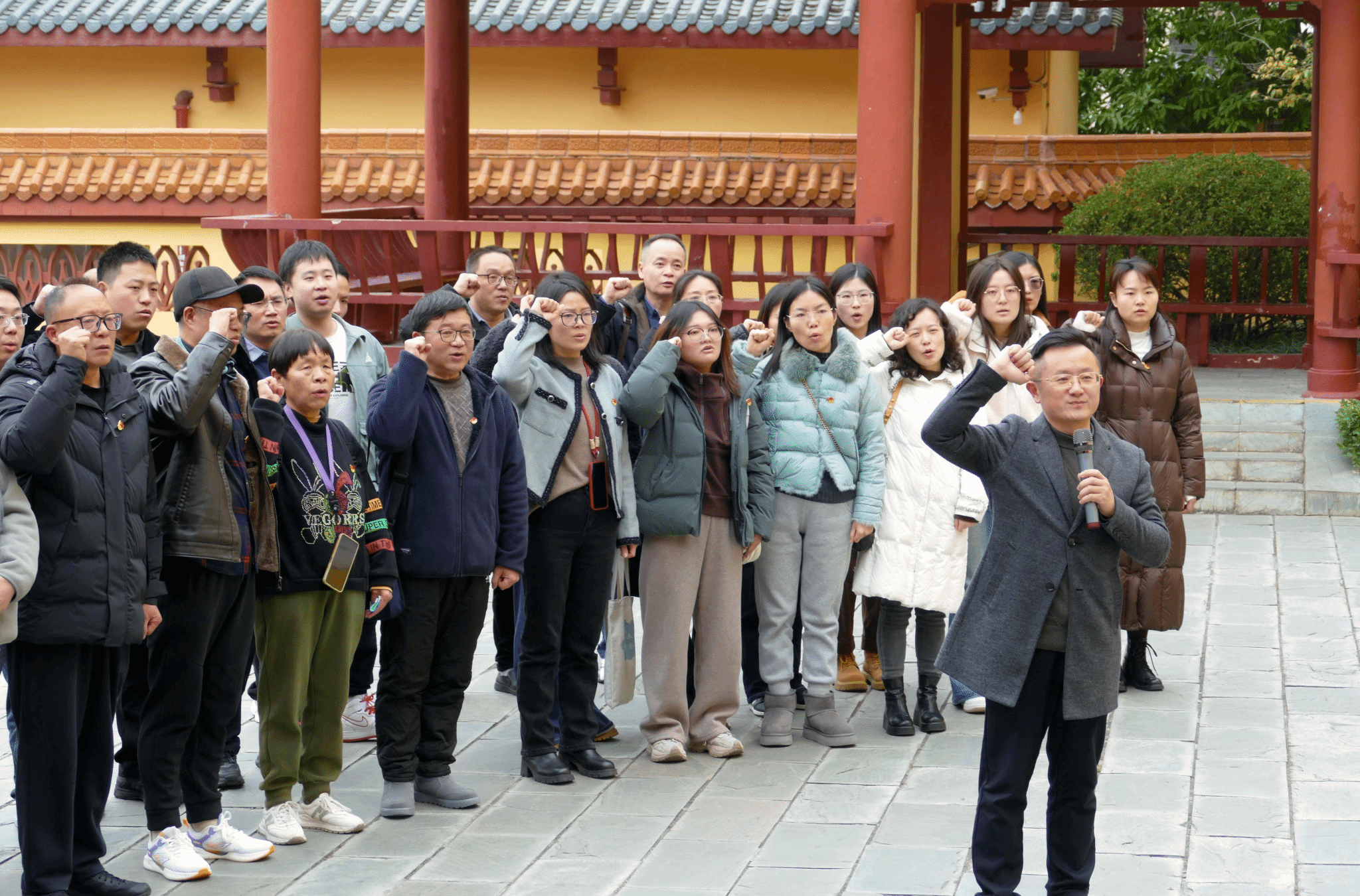 顺利抵达黄继光纪念馆后,党员同志在纪念馆门口统一佩戴党员徽章、着装整齐踏入馆内。馆前矗立的黄继光烈士雕像身姿挺拔,“特级英雄黄继光”的题字格外醒目。在学院党委书记何勇的带领下,全体党员同志面向鲜红的党旗和英雄雕像,郑重举起右拳,用洪亮而坚定的声音重温入党誓词。随后,在讲解员的引导下,大家依次参观馆内的历史展陈区、实物陈列区与事迹宣讲区。泛黄的烈士家书、磨损的参军军装、详实的抗美援朝战役史料,生动还原了英雄从苦难童年到参军入伍的成长轨迹。参观结束后,青年教师表示“要把英雄的奉献精神融入课堂教学与专业实践中,培养有担当的食品专业人才”。