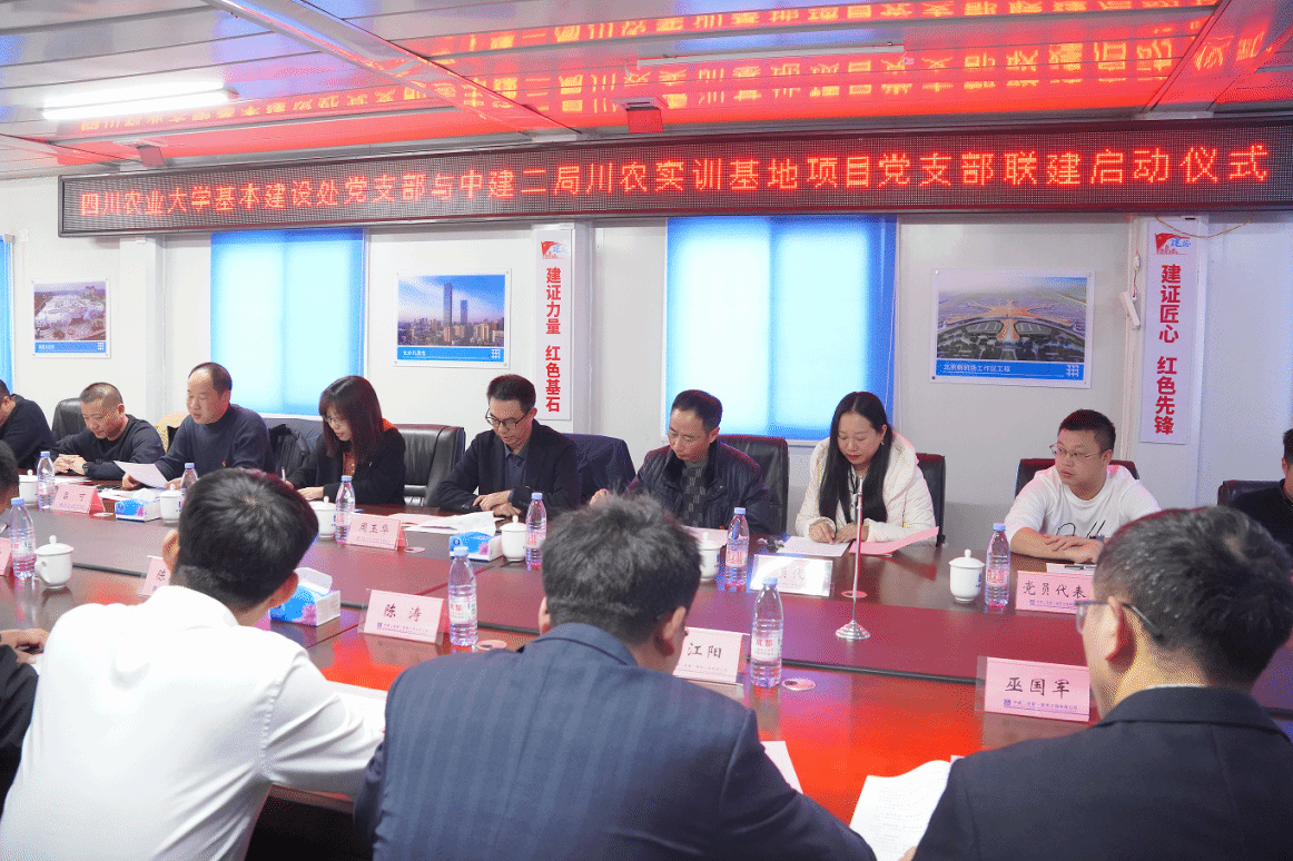 为深入贯彻落实新时代党的建设总要求,积极探索党建工作与业务工作深度融合的新路径、新模式,以高质量党建引领保障高质量发展,12月17日,基本建设处党支部与中建二局川农实训基地项目党支部举行党支部联建启动仪式。两支部在温在岗党员参会。学校机关党委纪检委员、校纪委纪检监察室副主任杜娟、中建二局一公司华中分公司党委副书记梁欣欣应邀出席。中建二局项目党支部书记石洋主持仪式。