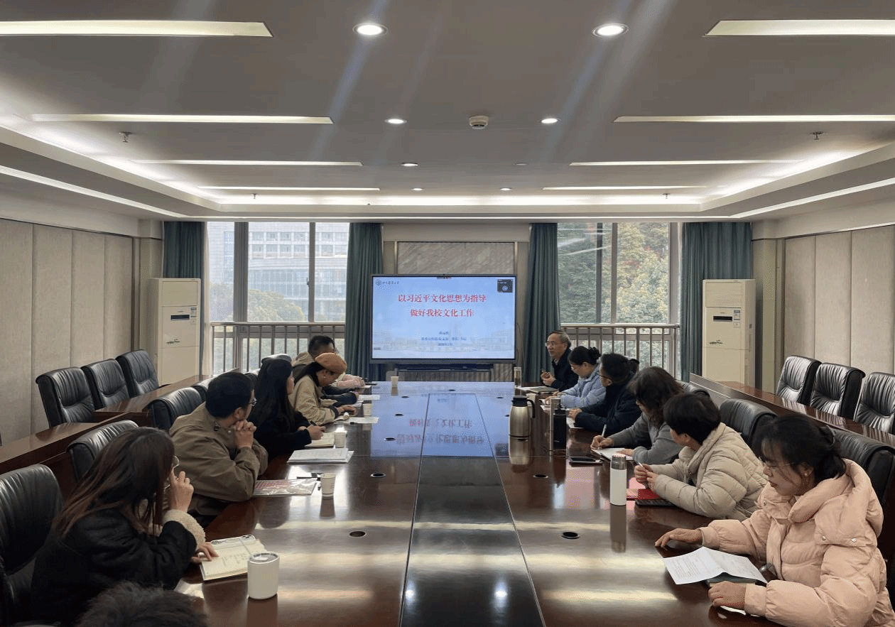 为深入学习贯彻习近平文化思想和党的二十届四中全会精神,1月13日下午,党委常委、宣传部部长、党支部书记蒋远胜教授以“以习近平文化思想为指导做好我校文化工作”为题讲授专题党课。宣传部党支部全体党员和习近平新时代中国特色社会主义思想教研室教师近20人参加。