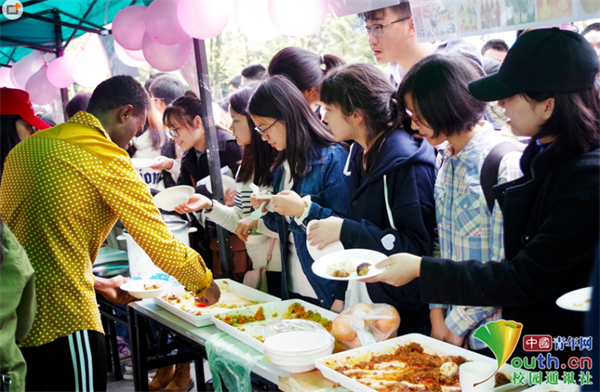 中国青年网成都11月17日电(通讯员 段晓玥 傅诗玮 何文涛)随着现代科技的迅速发展,国际交往日益频繁,开放的中国让更多留学生走了进来。为加强中外学生交流,领略异国文化,10月30日,四川农业大学国际交流合作处携手动物科技学院青年志愿者协会在校园里举办了一场“舌尖上的川农”——国际美食节。来自加纳、巴基斯坦、缅甸、意大利等11个国家的美食引得同学们赞不绝口,场面热闹非凡。