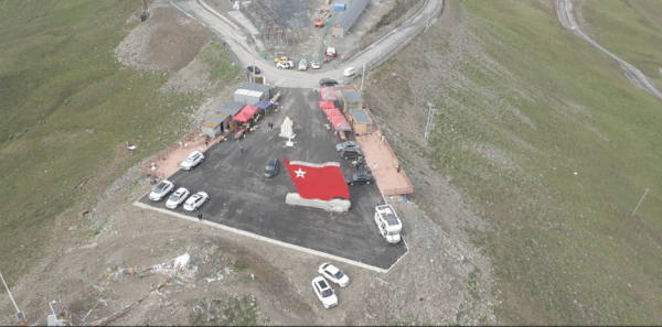 随后,团队来到了夹金山脚下,体验当年红军翻越夹金山的路程,感受当年长征的艰辛。夹金山巍然矗立、直插云霄,一眼望去,山体危岩耸突、峭壁如削。翻越夹金山的旅途充满着险恶崎岖的山路与尽收眼底的山河远阔,这燃起了成员们了对中国工农红军在如此高寒缺氧的情况下翻越崇山峻岭的敬佩之意。在海拔高达4114米的小金县与宝兴县分界碑旁,团队成员俯瞰了红军翻越的第一座雪山的险峻与雄奇,对当时红军身着单衣和草鞋在皑皑雪山上遭受住了生死考验惊叹万分。