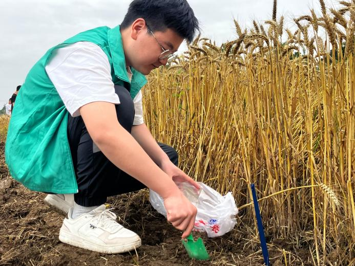 “环抱未来,愿净同行”实践团成员正在采集土样 团队供图