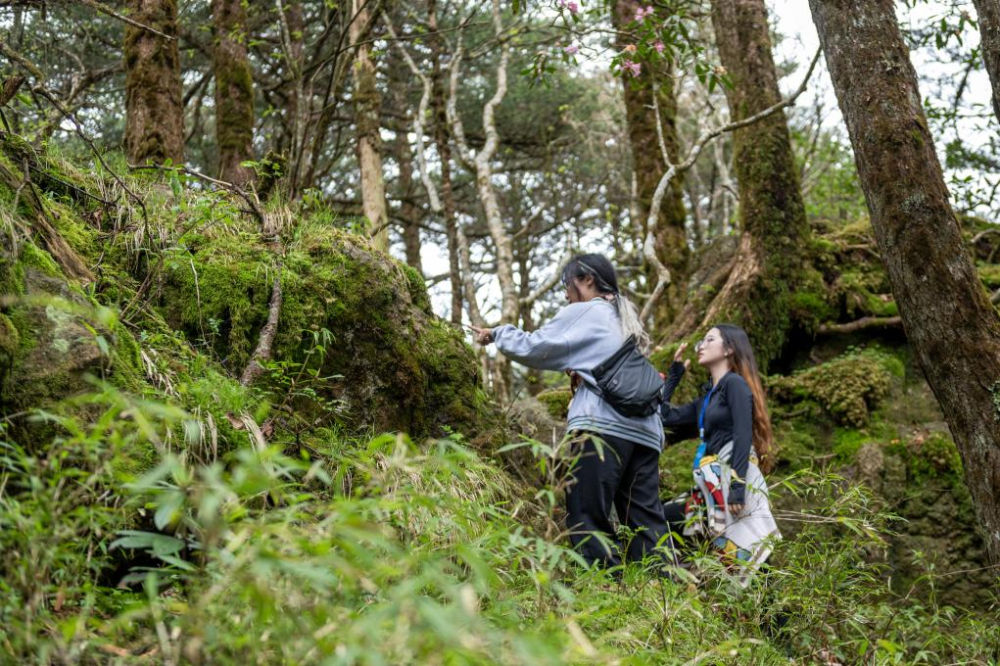 同学们在峨眉山了解植物生长情况(摄影:周乐鹏)
