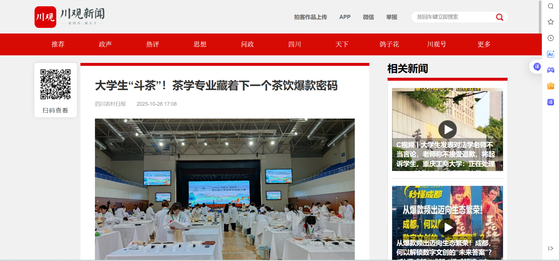 川茶,这一产值连续破千亿的优势产业,正面临从规模迈向高质量发展的关键一跃。在谭礼强看来,破题之道不仅在于布局新式茶饮与茶食等新兴赛道,更在于抓住“人”这一核心要素。那群兼具专业知识与创新热情的年轻茶人,是川茶未来的“活水”与希望。