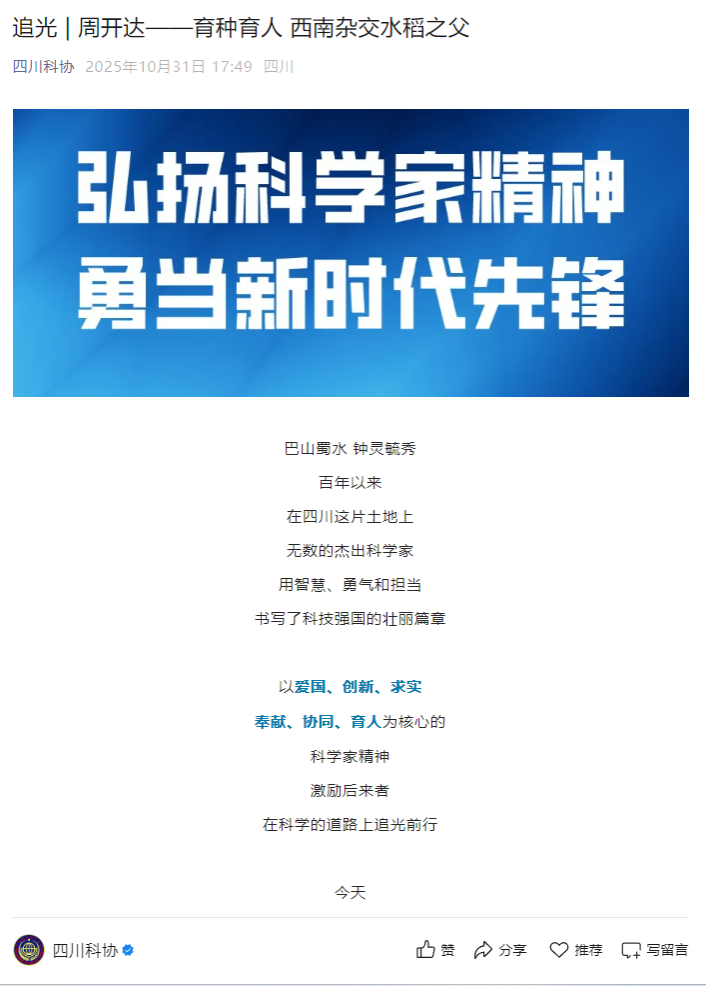 “四川百年百杰科学家”——周开达的故事
