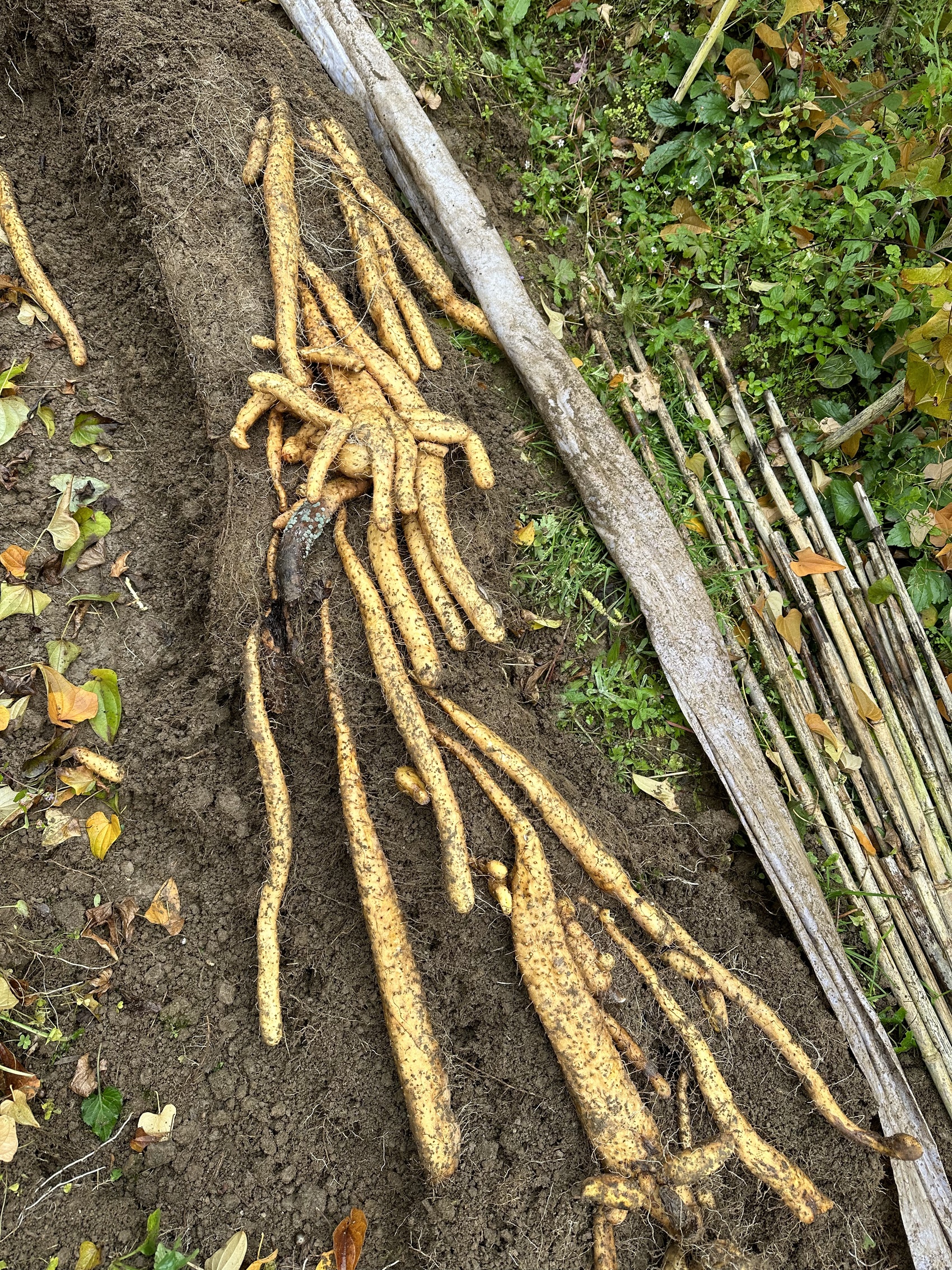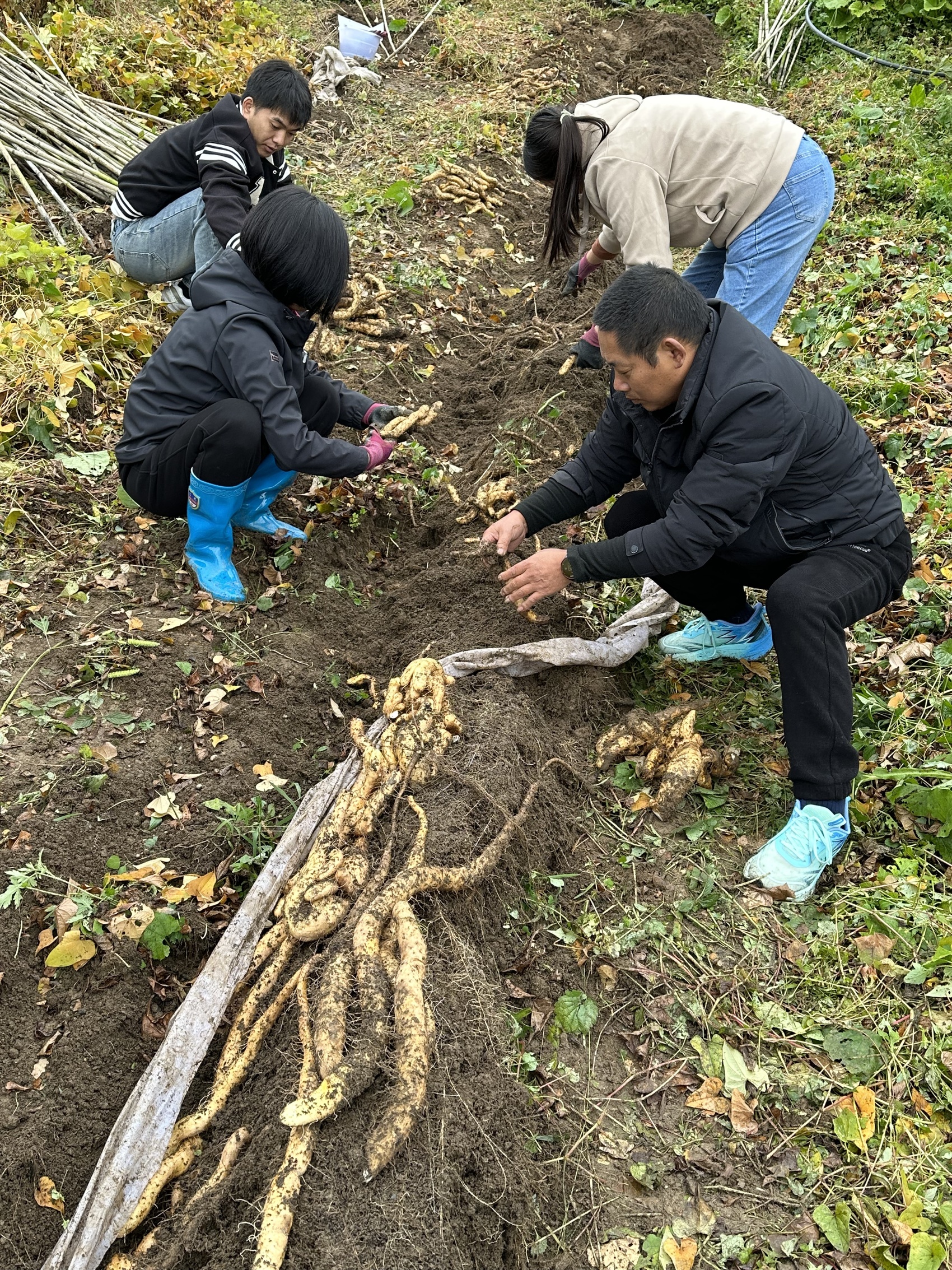 龚建军等种植户现在种植山药的技术叫浅层横向栽培技术,这也是校地合作的一个成果,通过这种方法种植,极大地减少了采挖山药的成本,夫妻二人,一天可以轻松采收一千多斤。
