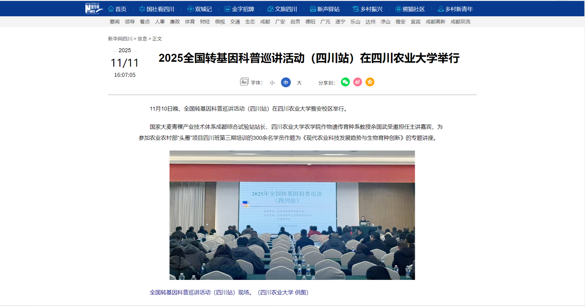 全国转基因科普巡讲活动(四川站)现场。(四川农业大学供图)