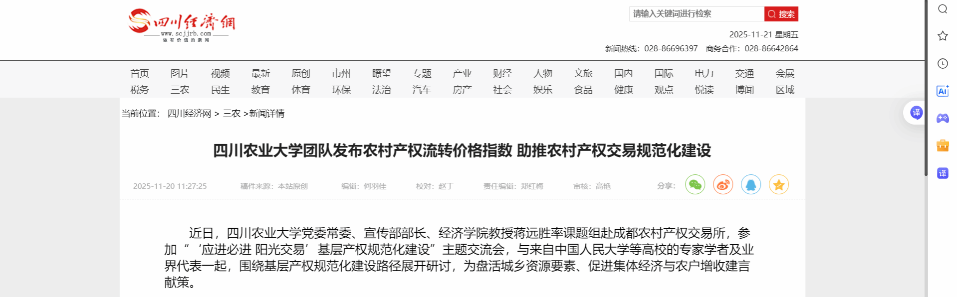 据悉,四川农业大学农村金融发展研究课题组将持续深化与成都农村产权交易所的合作,以学术创新服务农村产权市场发展,为乡村振兴注入新动能。