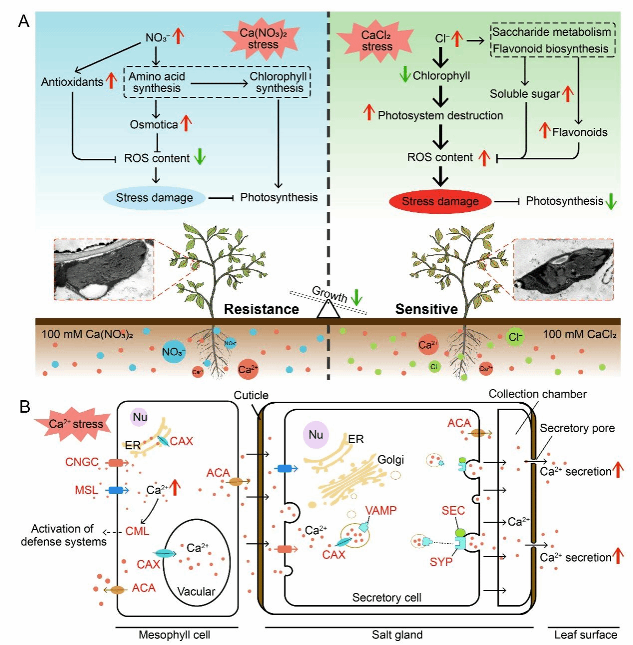 该研究不仅揭示了泌盐植物的钙适应机制,还深化了对阴离子特异性影响理解,为今后抗盐作物育种及钙质土壤改良提供了理论依据。