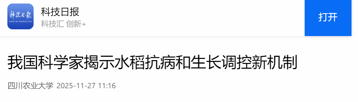 11月18日,四川农业大学教授、西南作物基因资源发掘与利用国家重点实验室主任陈学伟带领的水稻重大病害抗性机制研究团队在国际权威期刊《分子植物》(Molecular Plant)在线发表了题为《病原菌诱导产生的过氧化氢触发RNA结合蛋白RRM2R磷酸化以抑制OsMAPKKK18的内含子滞留进而协调水稻免疫与生长》的研究论文,揭示了水稻如何通过动态调控RNA可变剪接平衡水稻抗病与生长的新机制。
