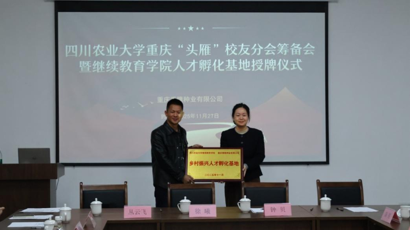 近日,四川农业大学举行重庆“头雁”校友分会筹备会暨乡村振兴人才孵化基地授牌仪式。此举标志着川农大在深化“头雁”项目训后赋能、构建“培育—服务—发展”全链条人才生态上迈出关键一步,并积极融入成渝地区双城经济圈建设,为区域乡村产业振兴注入新动能。