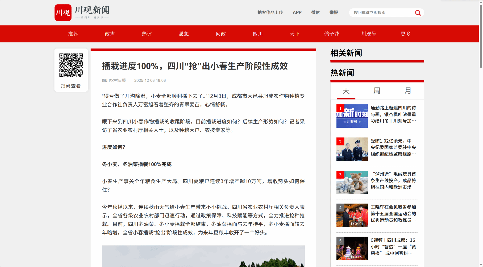 眼下来到四川小春作物播栽的收尾阶段,目前播栽进度如何?后续生产形势如何?记者采访了省农业农村厅相关人士,以及种粮大户、农技专家等。