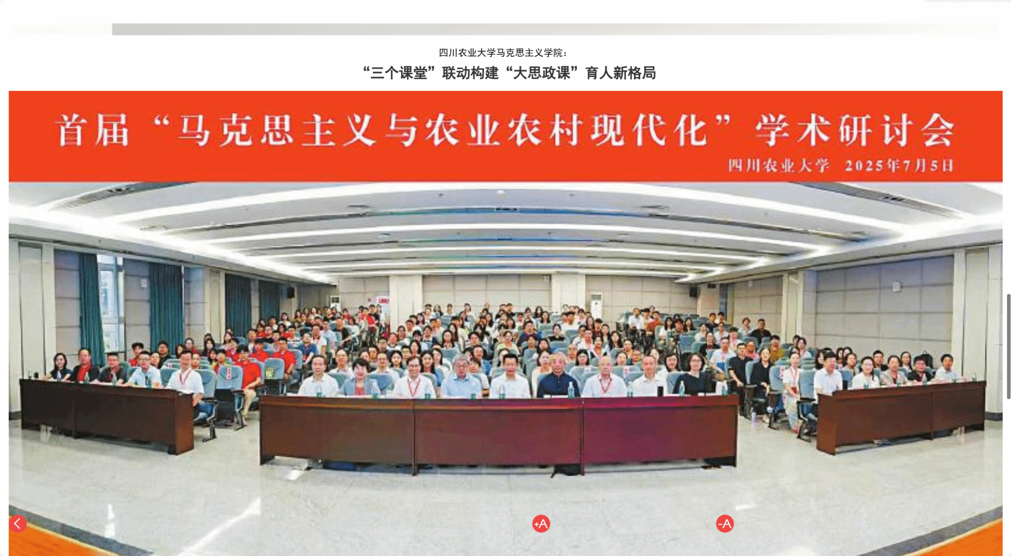 在推进乡村全面振兴、加快建设农业强国的时代号角下,涉农高校马克思主义学院建设迈入阔步前行、内涵式发展的关键阶段。与培育发展新质生产力相呼应,四川农业大学马克思主义学院积极探索新育人路径,打破传统思政课的刻板印象,将思政“小课堂”、社会“大课堂”与网络“新课堂”有机融合,在守正创新中构建起具有鲜明“三农”特色、彰显时代精神的“大思政课”育人新格局,为培养知农爱农新型人才筑牢思想根基。