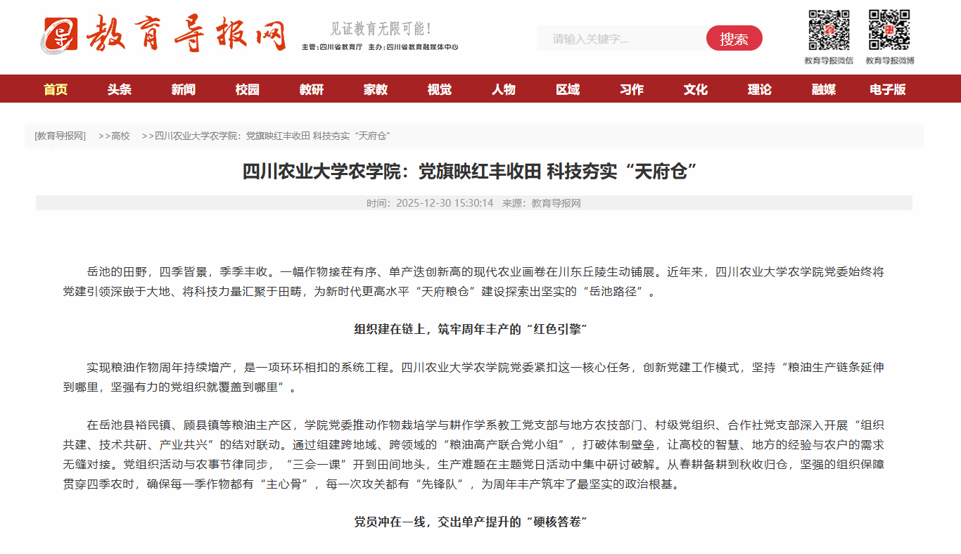面向未来,四川农业大学农学院党委将继续以提升粮食综合生产能力为核心,不断深化党建引领产业发展的创新实践,为描绘农业更强、农村更美、农民更富的四川画卷,贡献更多智慧和力量。