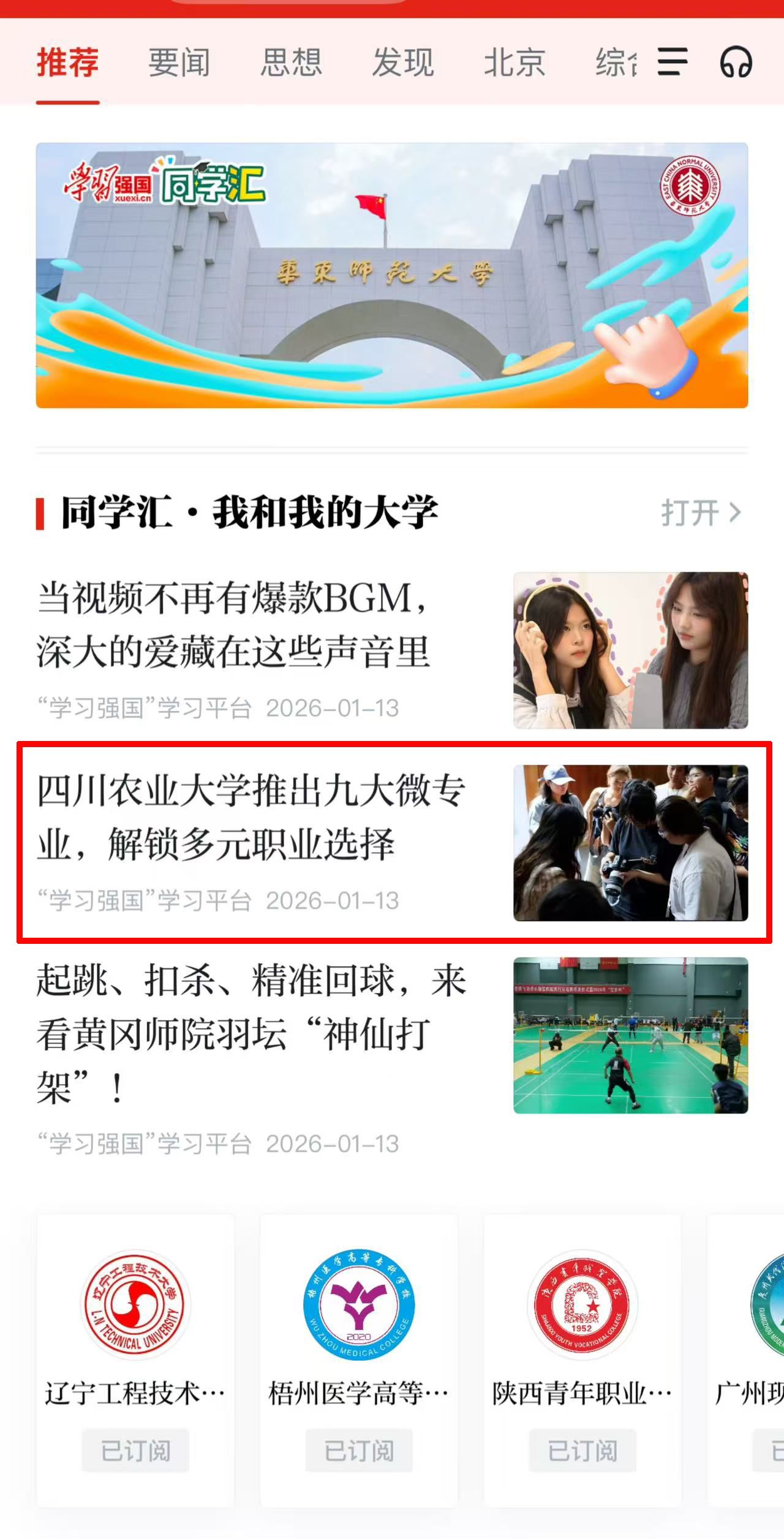 (学习强国同学汇)四川农业大学推出九大微专业,解锁多元职业选择