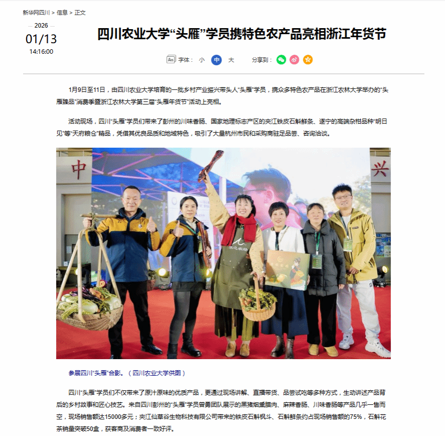 (新华网)四川农业大学“头雁”学员携特色农产品亮相浙江年货节