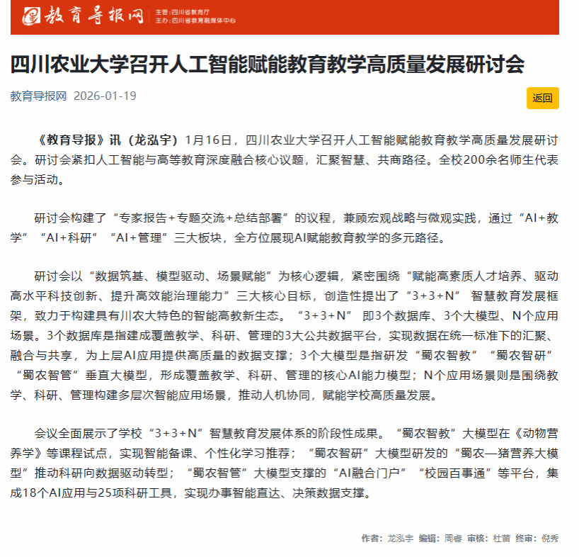 (教育导报网)四川农业大学召开人工智能赋能教育教学高质量发展研讨会