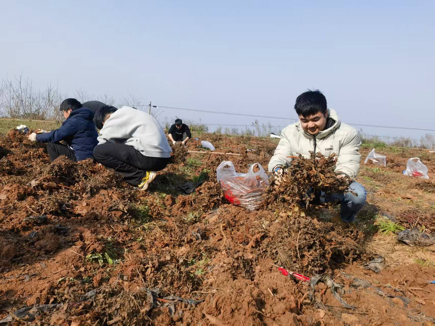 “分蘖点在这里,下刀要准。”张云松教授捏着一株芍药根,现场进行解剖般的讲解。学生们分组协作,将性状清晰的芍药种质,依据试验设计精准补植到位。这一刻,抽象的“科研严谨性”化作了具体的田间规范。