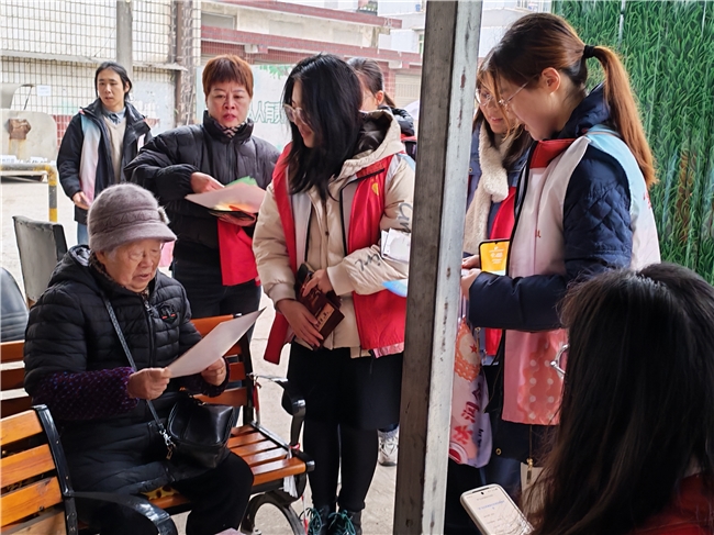 实践团成员在汉碑路社区与居民进行亲切交流(曾彩怡 供图)