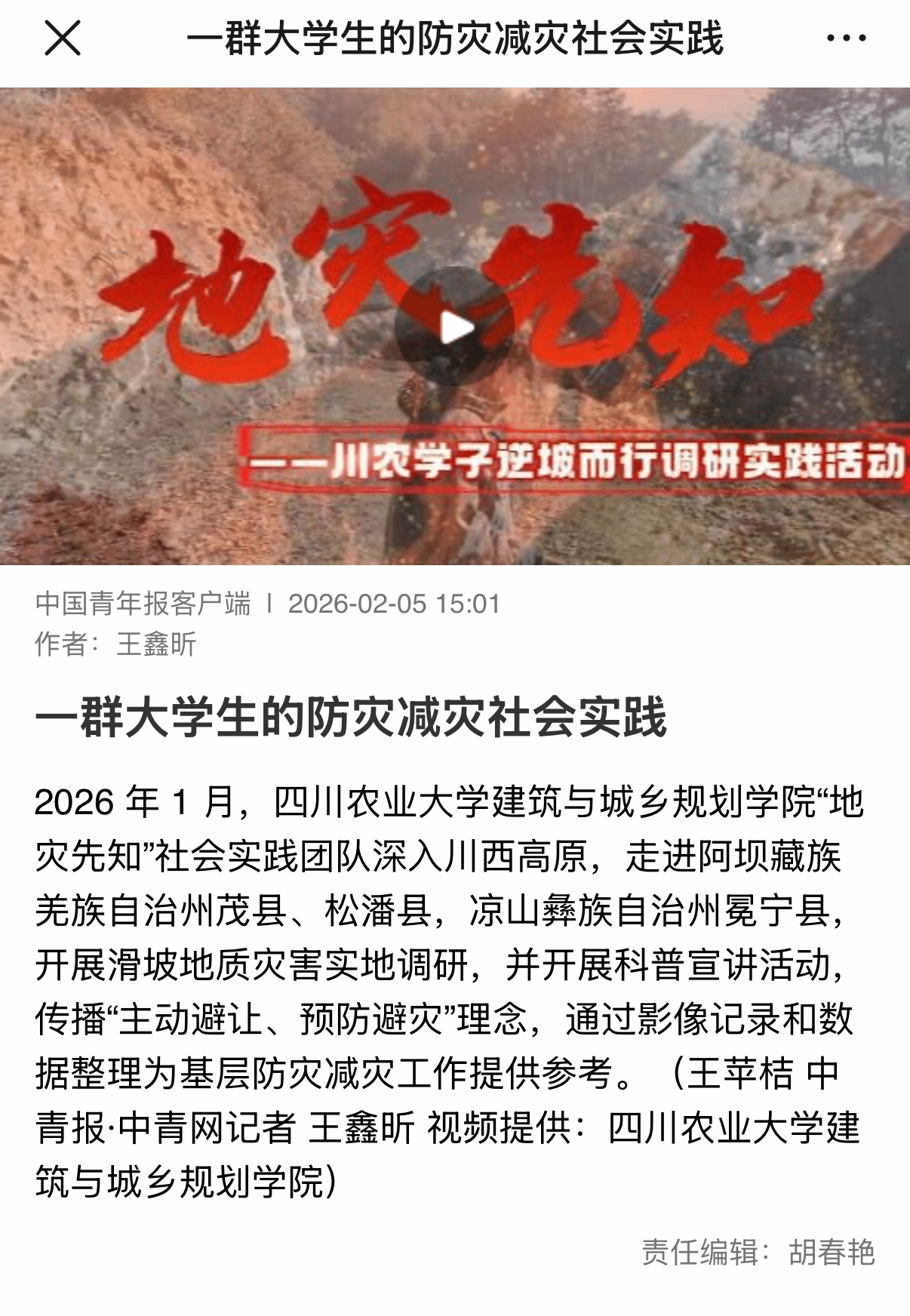 (中国青年报客户端)一群大学生的防灾减灾社会实践