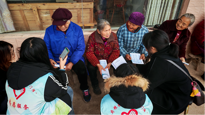法畅农途分队成员向桂花村村民了解民情 供图:熊莉