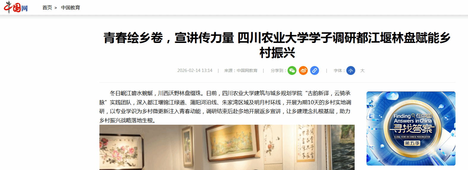 据悉,此次调研是“乡绘骑迹”项目的重要实践,既为都江堰相关区域乡村建设提供了专业智力支持,也生动践行了大学生“将论文写在祖国大地上”的责任与担当。调研结束后,团队学子带着满满的实践成果,分赴四川、重庆、贵州等地开展返乡宣讲,累计举办10余场分享会,推动乡建理念广泛传播。