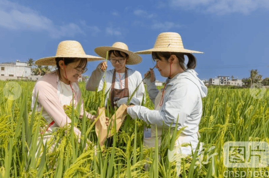 2026年3月7日,海南省陵水黎族自治县,四川农业大学南繁基地,导师带领女博士生收集水稻育种实验材料。