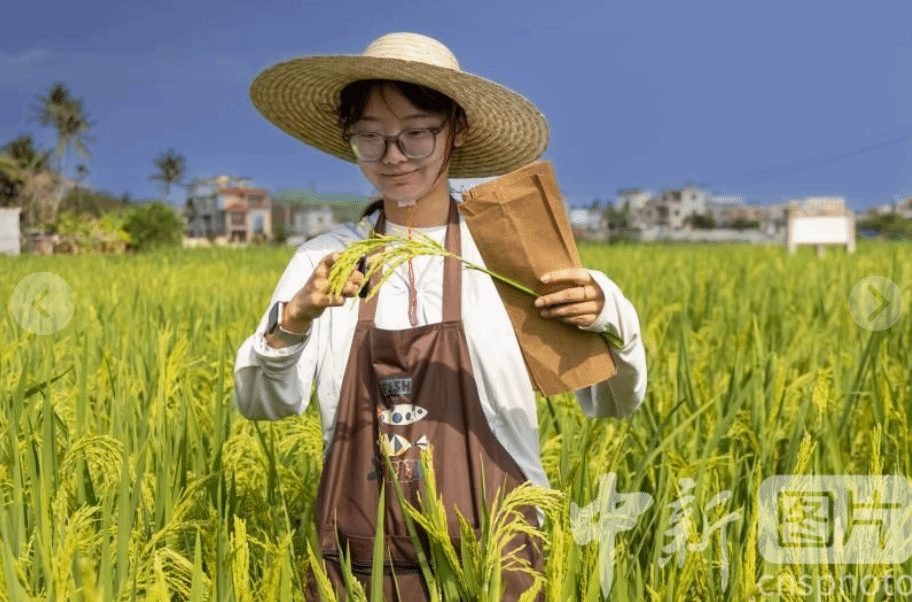 2026年3月7日,海南省陵水黎族自治县,四川农业大学南繁基地,女博士生收集杂交水稻父本材料,为人工授粉做准备。