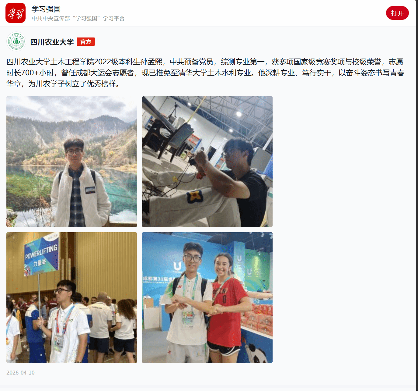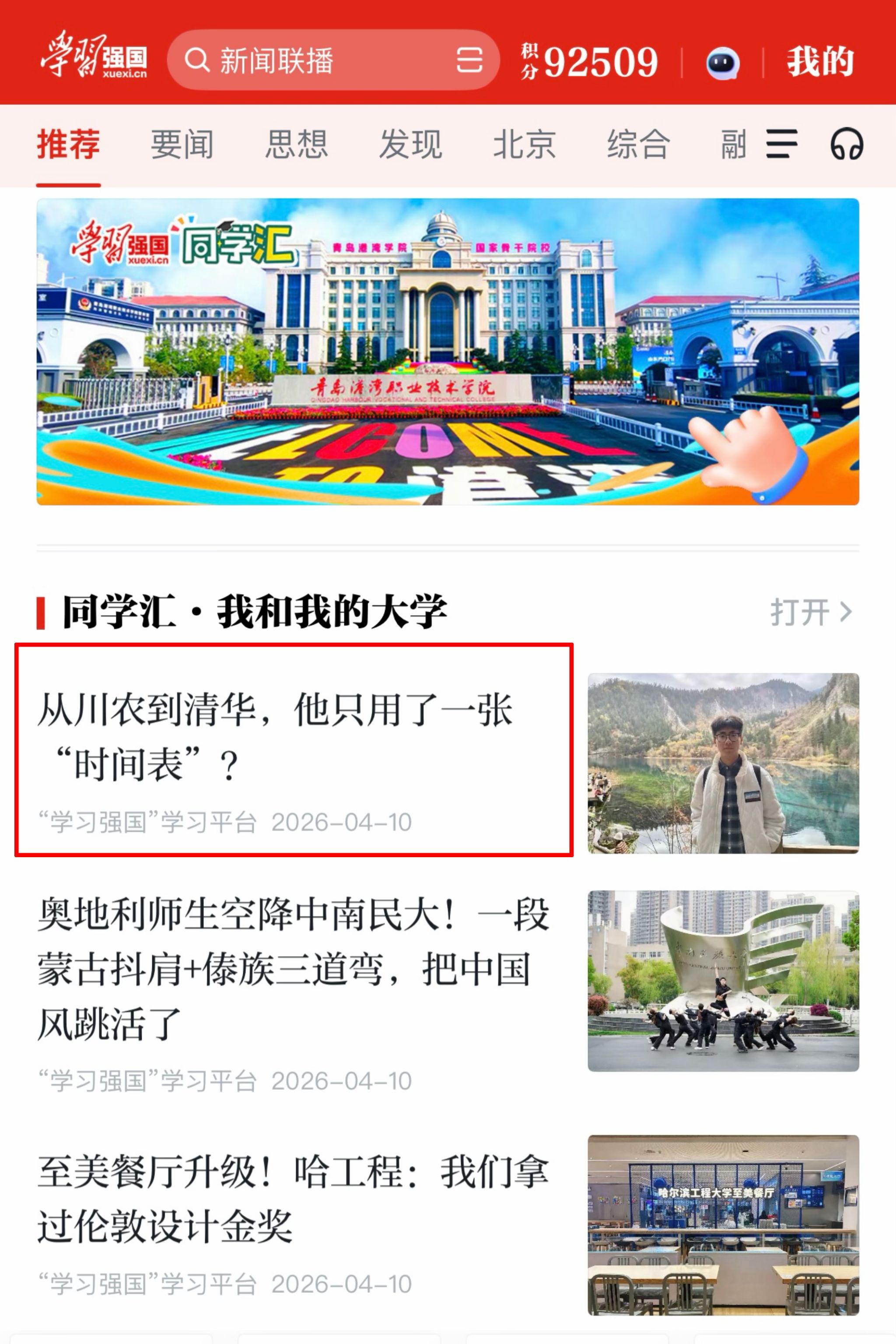 (学习强国同学汇)从川农到清华,他只用了一张时间表?