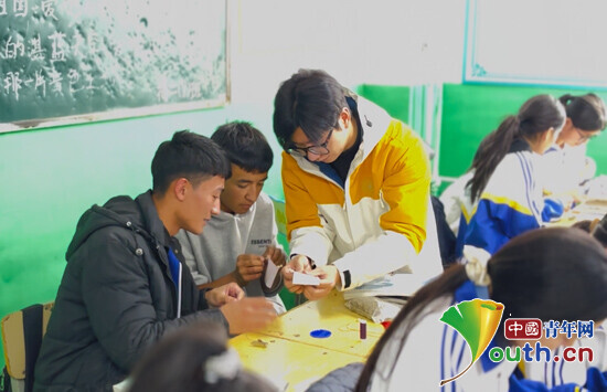图为研支团成员给学生们讲解高考备考方法。马骏供图