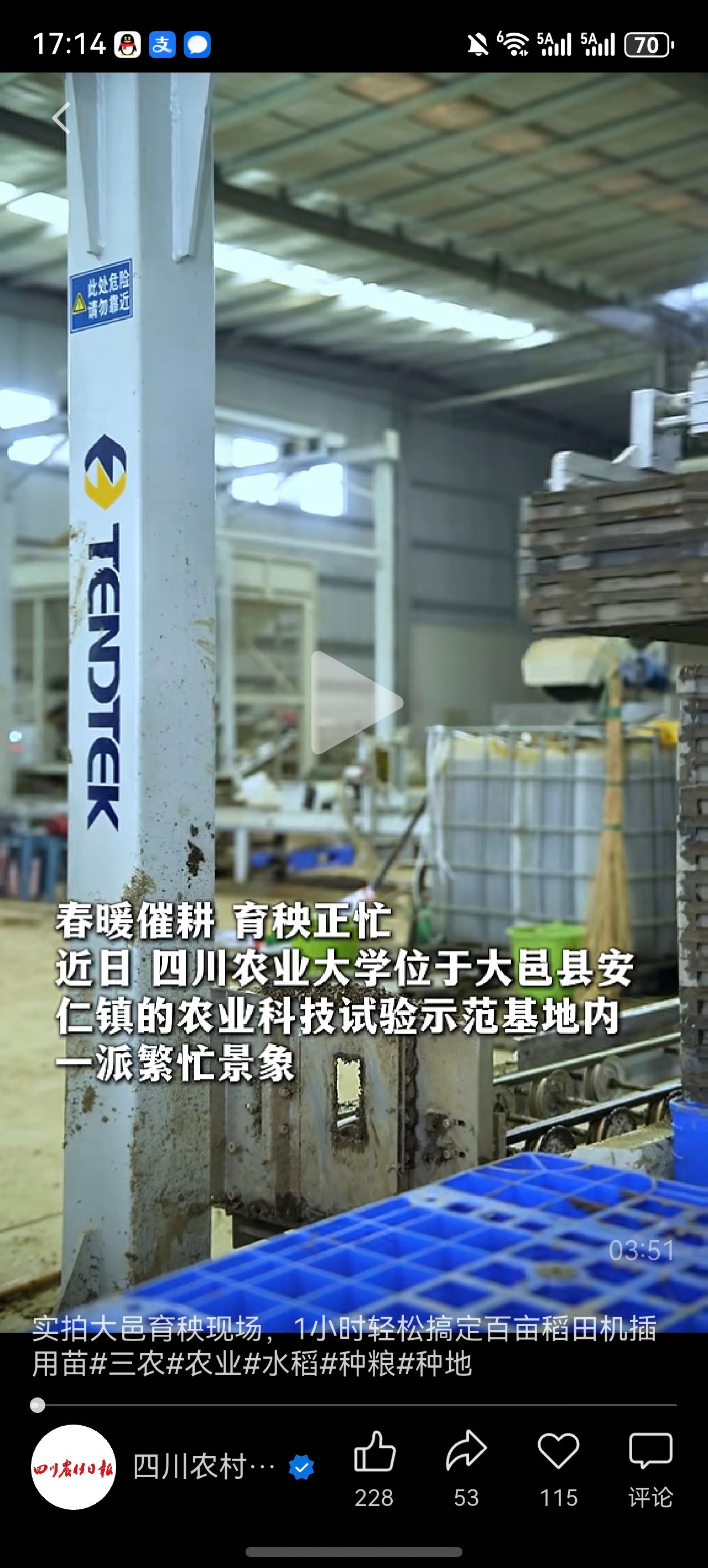 (四川农村日报公众号)实拍大邑育秧现场,1小时轻松搞定百亩稻田机插用苗