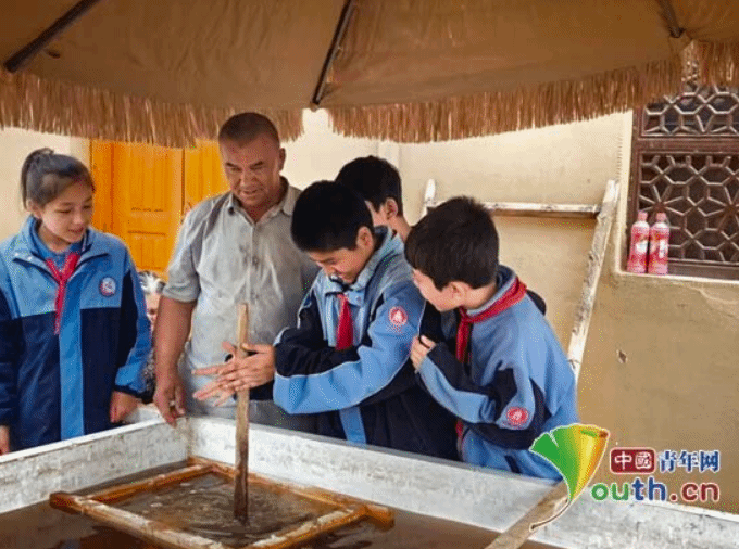 此外,志愿者还带领孩子们走进桑皮纸博物馆,在手艺人指导下参与桑皮纸制作。