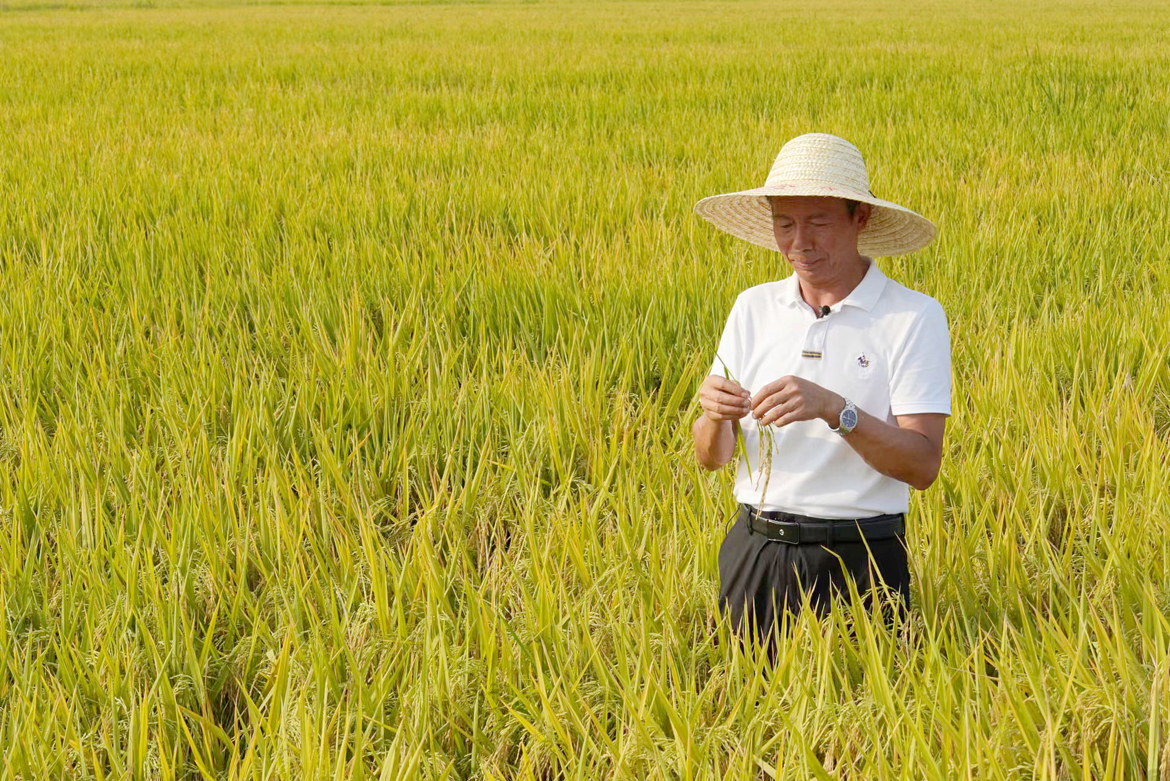 如今,马均每周要去三次基地。他常常与种粮人一起坐在田埂上,晒太阳,聊稻子。在他看来,他们之间早已不是“教授和农民”的关系,而是一起守着稻田的“老伙计”。望着翻滚的稻浪,看着农民们丰收时脸上的笑容,马均说:“把根扎在地里,把心放在粮上,中国人的饭碗就一定能端得牢。”